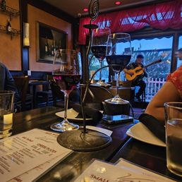 The service was great! Friendly and accommodating staff. We absolutely enjoyed the musical entertainment! Very talented and would love to see him perform again! He even started playing the Happy Birthday song while we were doing a Birthday cake for someone in our party. The interior design of the restaurant was well done. I liked that they had multiple dining rooms. I love the idea of small and big tapas plates. Some of the food was a little on the salty side for my taste buds... but I want to also add that some of our party enjoyed the saltier taste. The presentation was nice. I'd come back to see the musical entertainment and try different menu items.